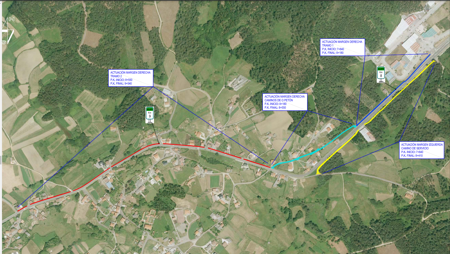 A obra realizarase na súa totalidade na AC-419 e afectará aos lugares de A Calle, Fontán e O Petón. Nas actuacións inclúese o arranxo da vía de servizo do Petón ao polígono así como a senda do parque empresarial ao cruzamento da pista da Agra a Lestimoño pola outra beiravía. Na marxe dereita melloraranse os accesos para dar continuidade peonil ao longo de todo o tramo. Tamén se proxecta un acceso que servirá como camiño de servizo ás parcelas privadas e habilitarase un carril peonil que estará separado do tráfico rodado.