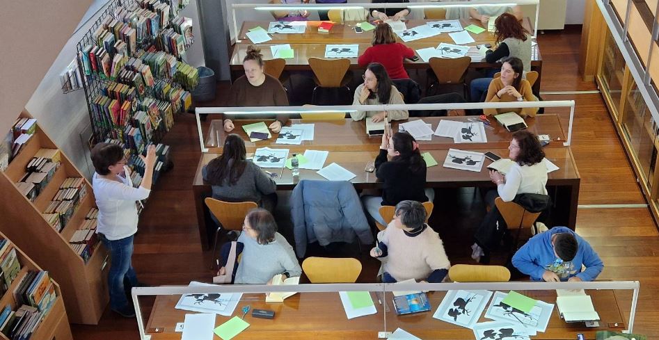 A biblioteca municipal da rúa San Xoán Bautista abriu este sábado as súas portas para converterse no escenario dun obradoiro de book folding organizado pola Concellaría de Bibliotecas, que basicamente é unha técnica artística de dobrado de libros que permiten darlles unha nova vida converténdoos en obxectos decorativos ou, agora que se achega o Nadal, nun bo e orixinal agasallo para familiares e amigos. 17 persoas de diferentes idades puxéronse mans á obra coa axuda de Elena Caamaño, que é toda unha experta, e ata a concelleira Ángeles Pacoret fixo os seus «pinitos».