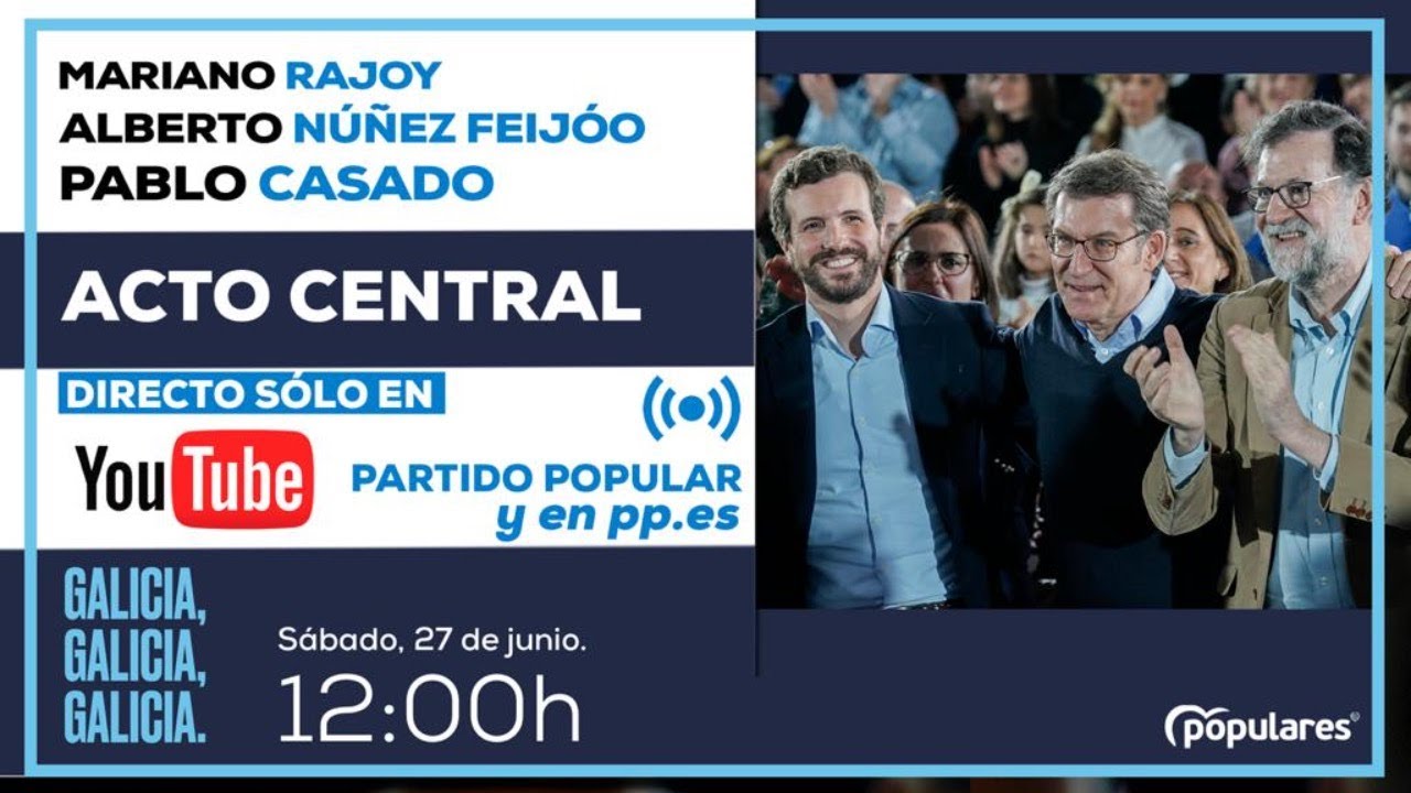 O presidente do Partido Popular, Pablo Casado, clausurou o acto de campaña na praza de touros de Pontevedra xunto ao presidente e candidato á Xunta de Galicia, Alberto Núñez Feijóo, e o expresidente do Goberno, Mariano Rajoy. No acto, tamén interveu o presidente provincial do PP de Pontevedra, Alfonso Rueda e asistiu o vicesecretario de Participación, Jaime Olano.