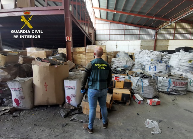 A Garda Civil investiga a tres persoas en Murcia despois de achar 5.000 toneladas de tóneres de impresora usados nun almacén clandestino. Os tóneres atopábanse amontoados sen ningún tipo de control nin a etiquetaxe correspondente nunha nave industrial de Baños e Mendigo (Murcia), que ademais estaba embargada. O inmoble tampouco dispoñía de medios de extinción nin de vixilancia.