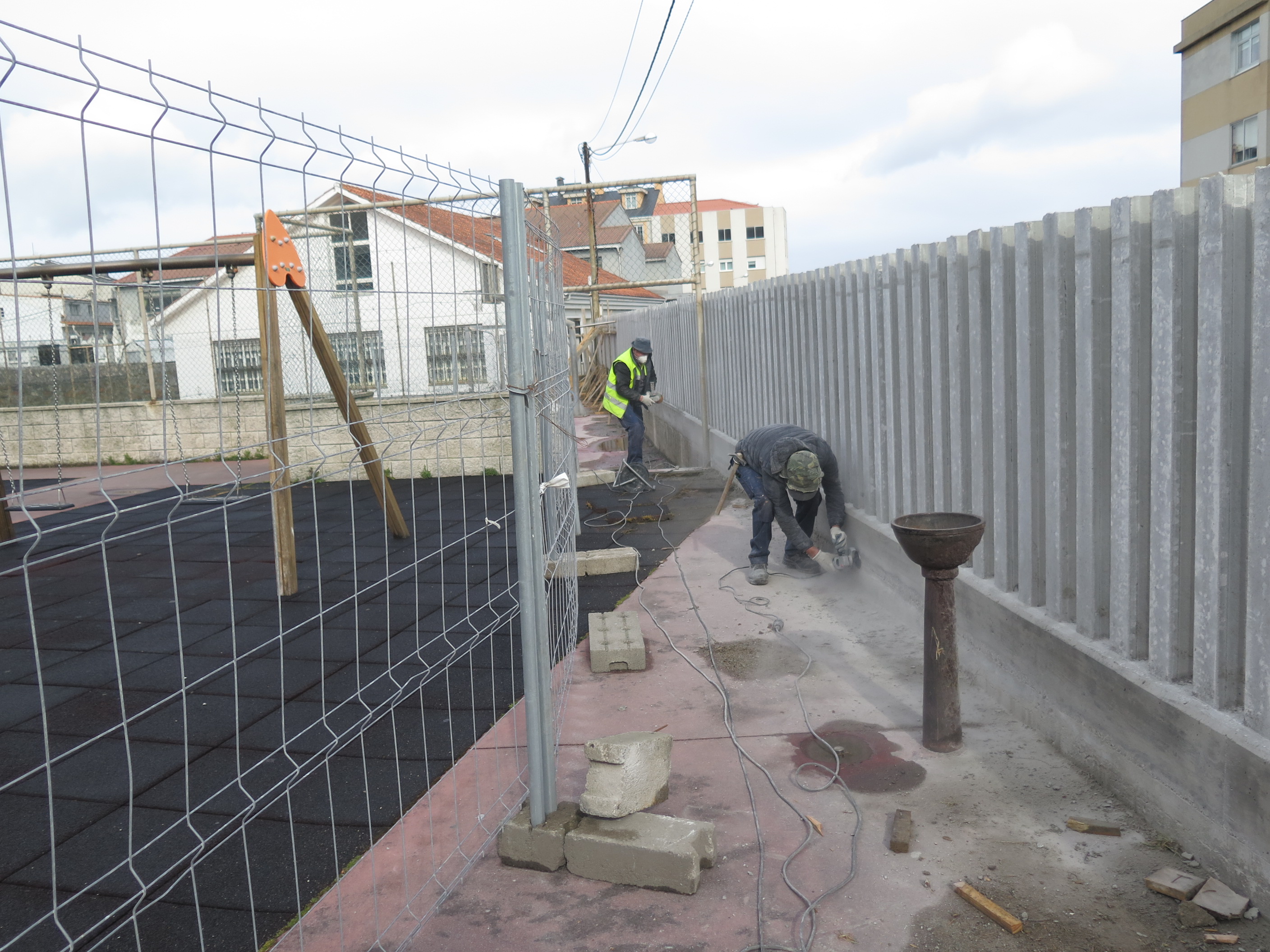 Deste xeito estase a dar continuidade aos traballos acometidos no curso pasado pola Consellería de Educación noutro tramo do muro, onde foi eliminado o peche antigo e substituído por un novo con postes de formigón nunha actuación idéntica á que se está a desenvolver agora. Neste caso as obras afectan ao sector de 62 metros do peche perimetral que protexe tanto a pista polideportiva como o parque infantil.