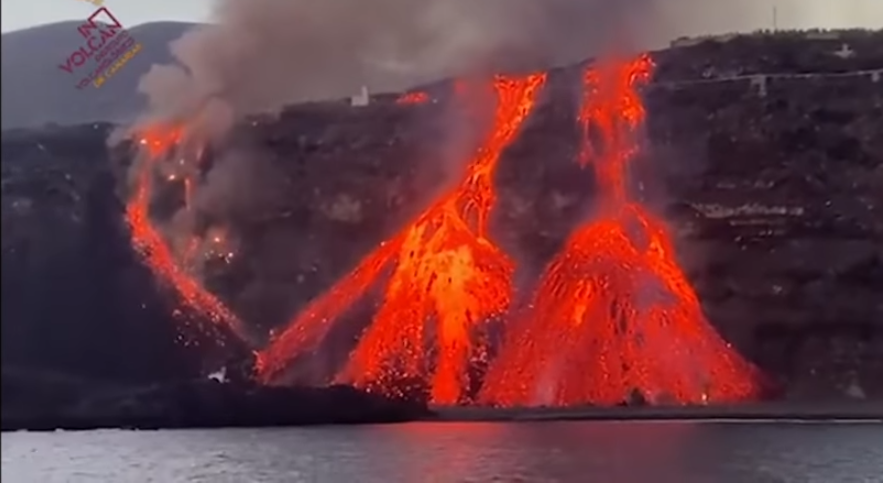 A lava do Cumbre Vieja chegaba este mércores de novo ao océano Atlántico. Facíao arrasando a praia dos Guirres, en Tazacorte, ao oeste da illa da Palma. É a segunda vez que a lava chega ao mar desde a erupción do volcán, o pasado 19 de setembro. Como entón, o choque térmico entre a lava (a entre 800 e 900 graos) e a auga provocou columnas de vapor con partículas de ácido clorhídrico. Algo que pode resultar perigoso para a saúde.