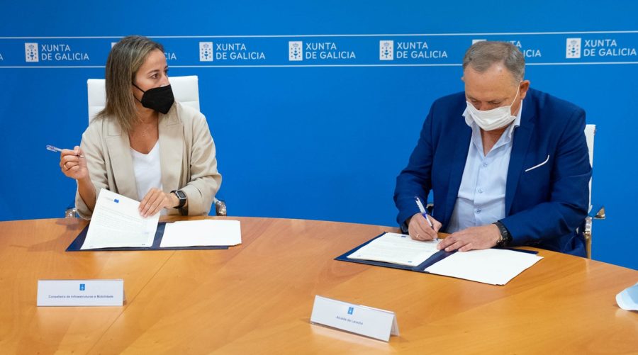 A conselleira de Infraestruturas e Mobilidade, Ethel Vázquez, e o alcalde da Laracha, José Manuel López Varela, asinaron nas dependencias da Consellería, en San Caetano, o convenio para a mellora da rede de abastecemento do municipio, cun investimento de 1,8 millóns de euros.