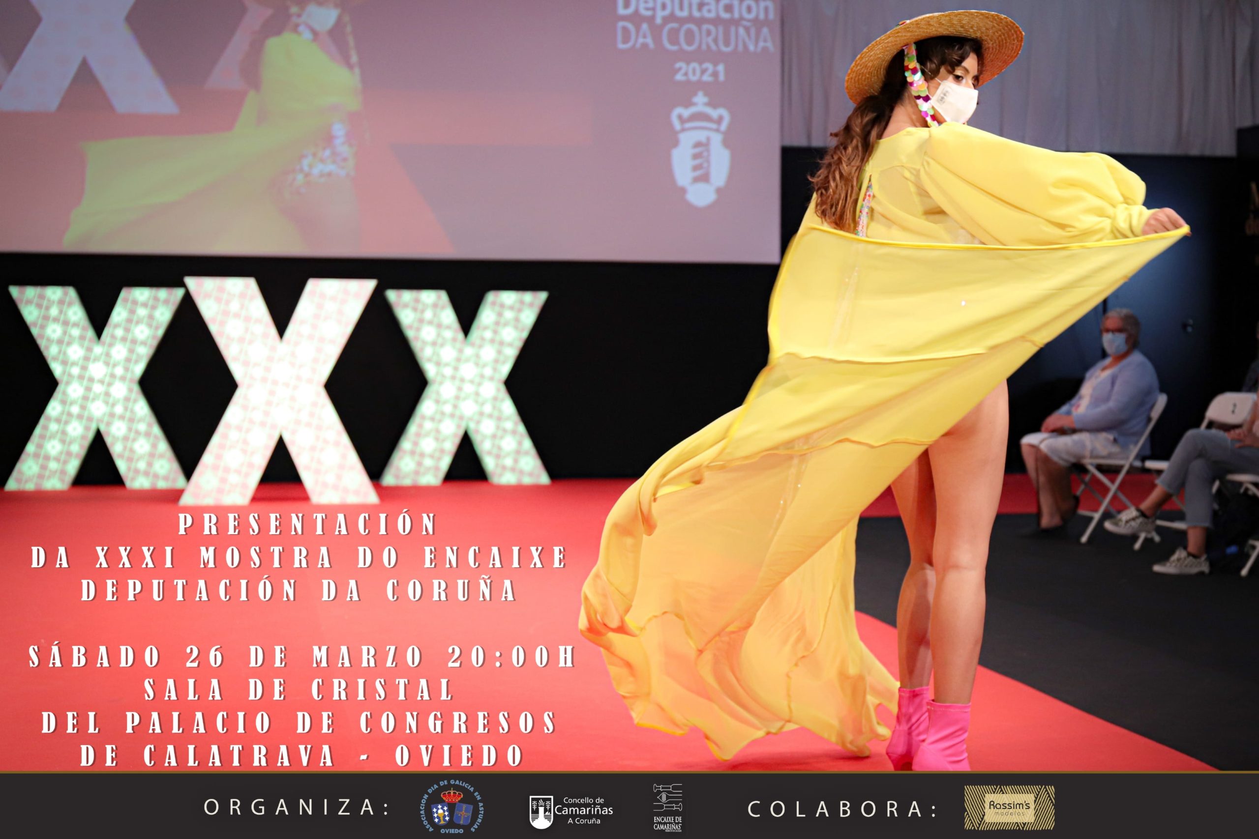 O desfile estará composto por dúas grandes firmas como a reputada deseñadora valenciana Dolores Cortés e a asturiana Ana Cabranes, habituais da Mostra do Encaixe. Ademais, completarán a pasarela 12 coleccións de gañadores e finalistas do certame de noveis deseñadores: Rocío Molina e Alba Cobos coa súa colección ‘Enxebre (2)’, Rebeca Mercado con ‘Déjame Encajar’, Candela Rodríguez e Alba Otero con ‘Carrera de Indias’, Josu Santos con ‘Tira y Afloja’, Joaquín Ruíz con ‘Suspiros flamencos’, Jaione Ventura con ‘Zeistmaschine’, Uxía Rodríguez con ‘Estímulos’, Eli Conde con ‘Victoria’, Judith Martín con ‘Matista’, Iria Cameán con ‘Un paseo sereno’, Sara Alonso con ‘Enxebre (1)’ e Beatriz Anido con ‘Sea Lung’.