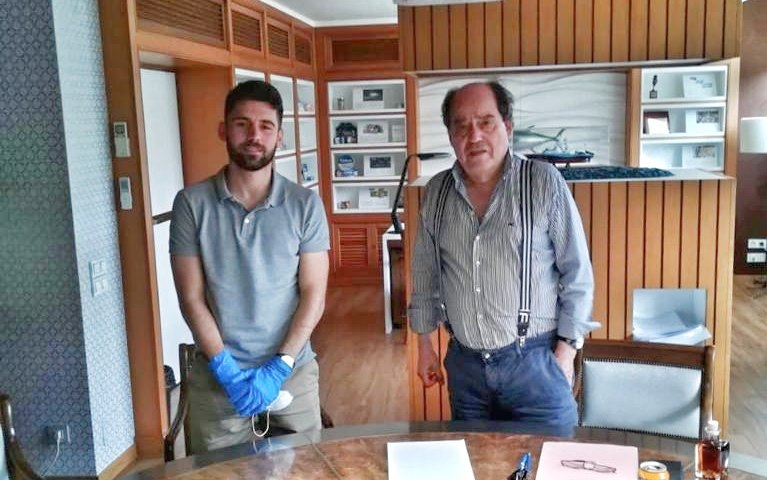El capitán del primer equipo y el presidente del club, Luciano Calvo, firmaron la renovación del futbolista, que llegó a As Eiroas en la temporada 2012/13 procedente del Laracha C.F. Al curso siguiente fichó por el Depor B, donde militó una solo temporada antes de regresar a Carballo.
