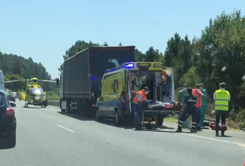 Aparatoso accidente con heridos en el kilómetro 87 de la AP-9 tras volcar un camión a la altura de Padrón, según informa el 112 Galicia. El accidente se produjo al volcar un camión con bañera que circulaba en direción Pontevedra. Contra este camión chocaron los vehículos que venían detrás que no dieron frenado. A consecuencia del impacto, el conductor del camión quedó atrapado en el interior, lo que obligó a intervenir a los equipos de excarcelación del GES de Padrón y de los Bomberos de Boiro. Para facilitar el acceso al herido, primero fue necesario estabilizar la cabina del camión. Mediante esta acción, los bomberos lograron las condiciones de seguridad necesarias para sacar al conductor y dejarlo en manos de los profesionales de Urgencias Sanitarias de Galicia-061, que tenían a disposición el helicóptero medicalizado con base en Santiago para agilizar el traslado. Hasta el lugar del accidente se desplazó un helicóptero, 2 camiones de bomberos, dos coches de la Guardia Civil y otro coche de la policía.