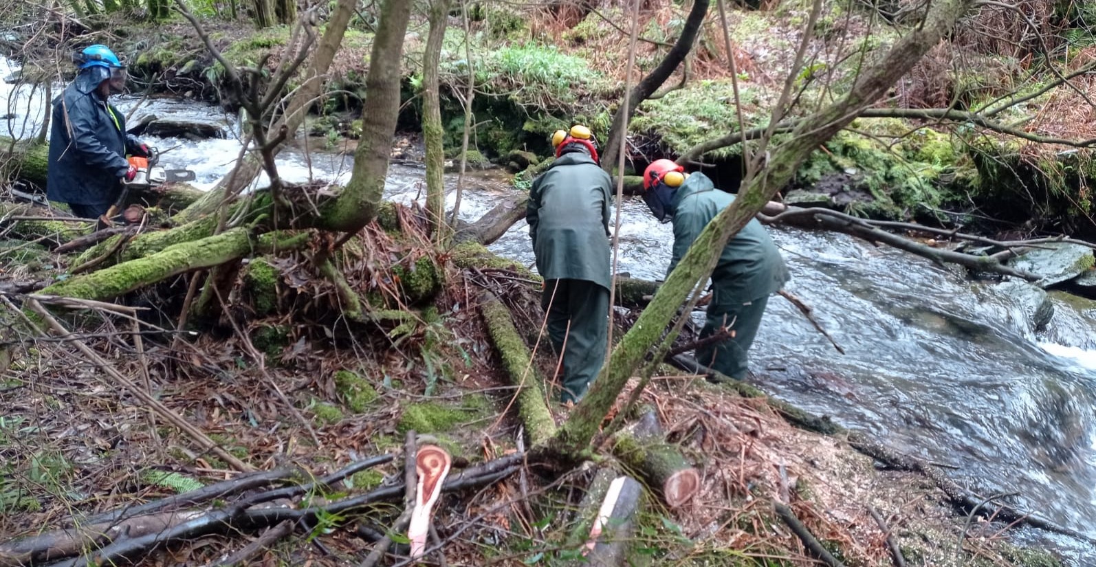 Os traballos céntranse na roza puntual e selectiva e na retirada de árbores e biomasa presente na canle para evitar atoamentos.