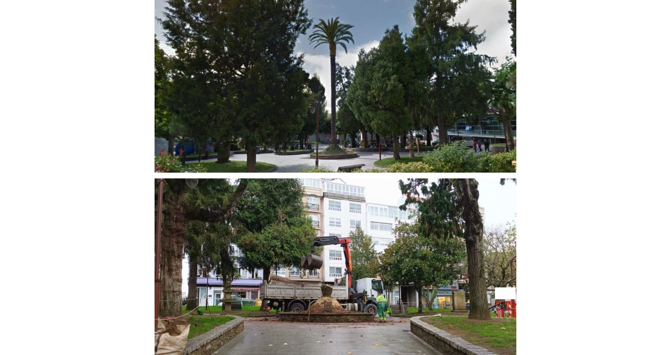 Tras las recomendaciones de los expertos que la examinaron debido a la afectación por picudo rojo y por el probable desprendimiento de las palmas, con el consiguiente riesgo para las personas usuarias del jardín, agravado por la envergadura del ejemplar que alcanzaba los 14 metros y dada la gravedad de la situación, la Concejalía de Medio Ambiente contactó de inmediato con una empresa especializada en la poda en altura para, de manera urgente, empezar con los trabajos de eliminación de la palmera. En la mañana de este miércoles dicha empresa fue la encargada de podar y posteriormente talar la palmera central del jardín municipal carballés para su retirada.