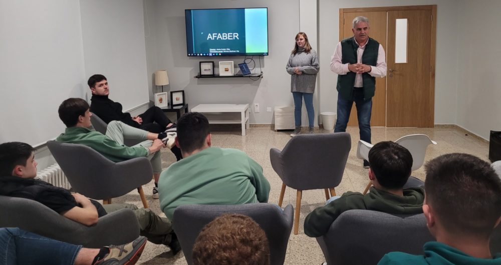 A educadora social de AFABER (Asociación de Familiares de Alzhéimer de Bergantiños), Mónica Martínez, e o presidente da entidade, Jesús Villar Antelo, acercáronse a impartir unha charla sobre o Alzheimer e os traballos da asociación na comarca de Bergatiños, aos alumnos da Escola Familiar Agraria Fonteboa de Coristanco. Falouse do traballo que realiza a asociación AFABER ao fomentar o apoio ás demencias, tamén no rural, e os presentes mostraron moito interese polos servizos que presta a entidade carballesa a enfermos e familiares.