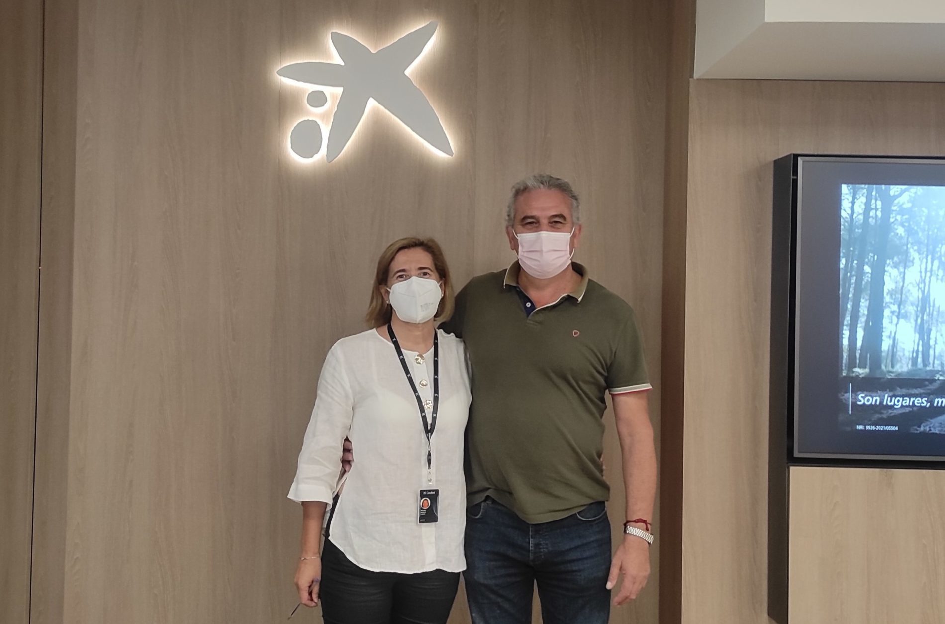 A entidade financeira Caixabank entregou este venres 5.000 euros a Afaber, a Asociación de Familiares de Enfermos de Alzhéimer de Bergantiños. Á firma de doazón asistiron a directora da entidade bancaria, Ana Mourelle Vázquez, e o presidente de Afaber, Jesús Villar.