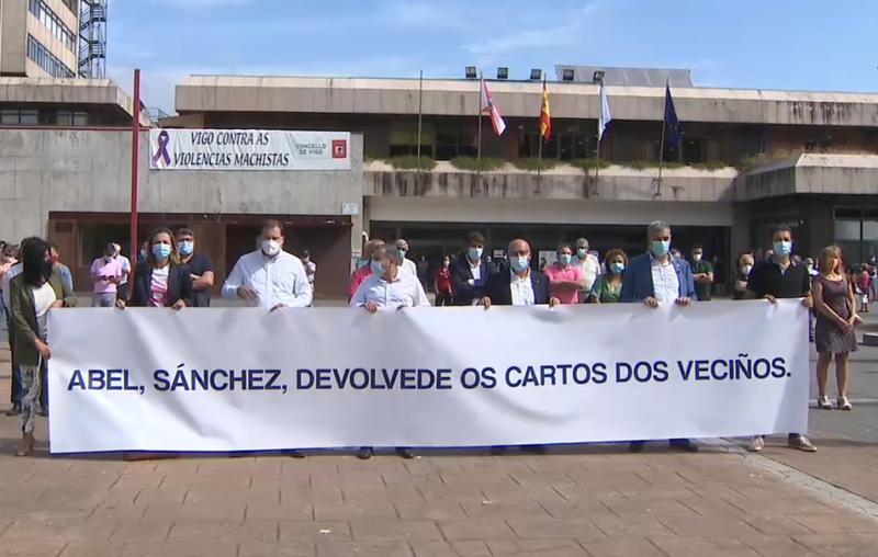 Varios alcaldes, concejales y representantes del Partido Popular se concentraron delante del consistorio vigués para pedir la dimisión de Abel Caballero como presidente de la Federación Española de Municipios y Provincias. Fue su voto de calidad el que permitió que saliese adelante el acuerdo para transferir los ahorros de los ayuntamientos al Gobierno central. Manuel Baltar, presidente de la Diputación de Ourense y miembro también de la junta de Gobierno de la FEMP, aseguró que los populares están convencidos de que «los ahorros, los remanentes, el superávit de las entidades locales, ayuntamientos y diputaciones, deben invertirse en el territorio que fue quien de generarlos, y no que los lleven, que los incauten, que los confisquen, que los expropie un Gobierno que está atentando contra la autonomía municipal».