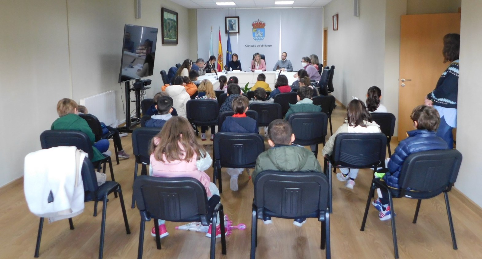 A rapazada de 2º de Educación Primaria do CEIP San Vicenzo visitou este venres a Casa do Concello de Vimianzo para coñecer o funcionamento e estrutura deste organismo. Participaron tamén nun Pleno, onde cada alumna e alumno lle entregou á alcaldesa, Mónica Rodríguez, unha carta coas súas peticións para mellorar o municipio, e interviron na propia sesión a través da quenda de ‘rogos e preguntas’. Desde o Concello, agradeceron tanto á rapazada como á súa profesora, Mónica Maroño, o tempo adicado a esta visita, e agardan que as crianzas gozasen con esta iniciativa. Pola parte institucional, todas as peticións foron lidas e serán atendidas.
