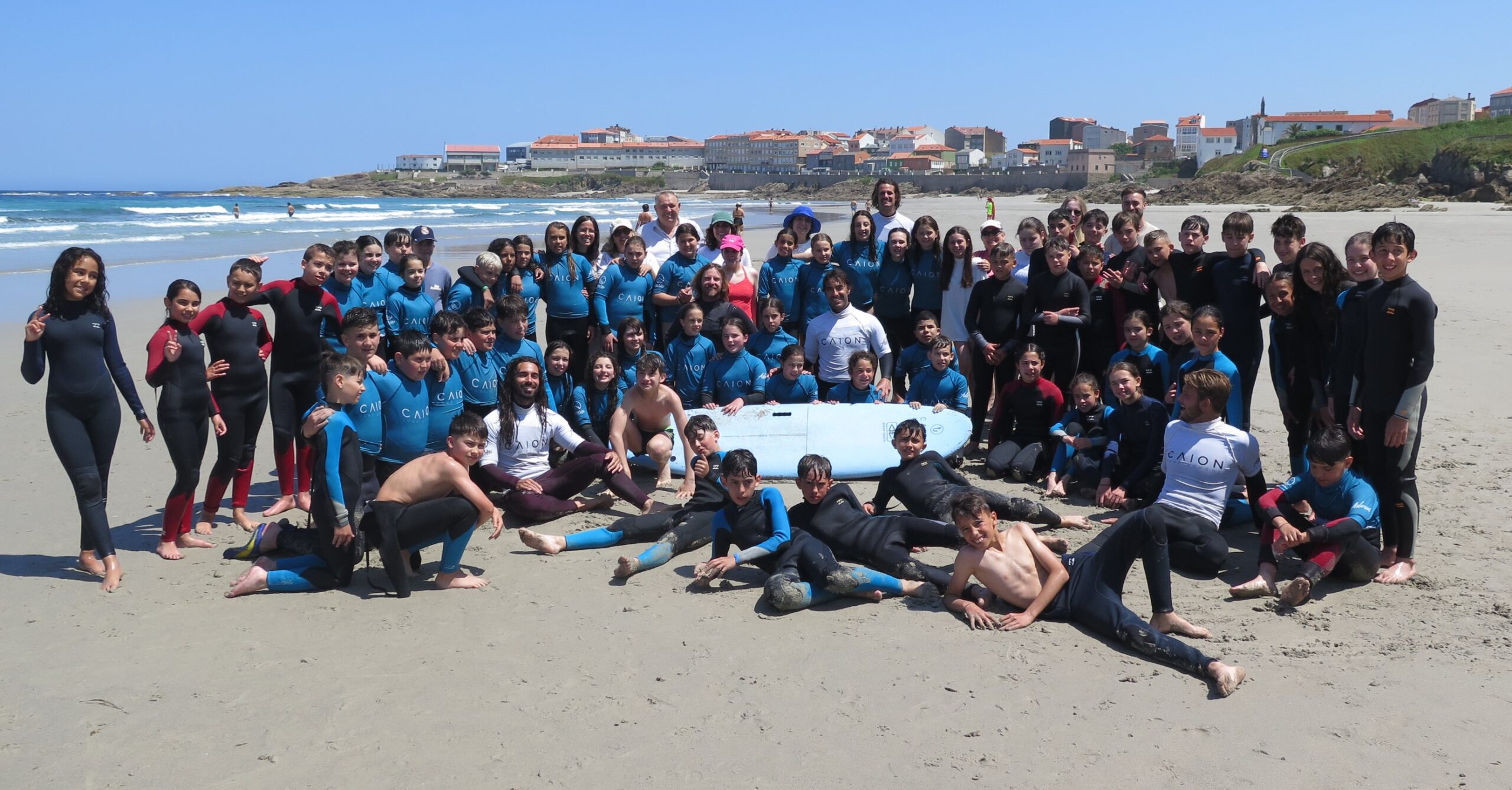 O Concello apostou nos últimos anos por levar esta actividade aos centros de ensino do termo municipal. Nesta edición financiouse a participación do alumnado de 5º e 6º de primaria do CEIP Otero Pedrayo, que hoxe tiveron xornada práctica na praia de Caión, onde recibiron a visita do alcalde, José Manuel López Varela, e da concelleira de Deportes, Patricia Bello.