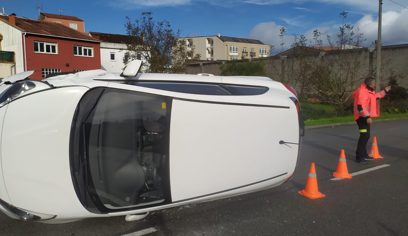 Una mujer resultó ilesa en un aparatoso accidente de tráfico ocurrido en la mañana de este jueves en Carballo. El suceso se produjo a la altura del número 117 de la avenida Bergantiños cuanto el turismo de la marca KIA que conducía la mujer hizo una maniobra evasiva de otro que estaba maniobrando para aparcar. La conductora no calculó bien y enganchó al otro coche por la esquina izquierda trasera con el suyo al mismo tiempo que daba un brusco volantazo por lo que el KIA terminó volcado sobre el lateral de la conductora, quedando esta atrapada en el interior. Tras el aviso pasado por el 112 al lugar llegó de inmediato Protección Civil y una patrulla de la Policía Local, que fueron los encargados de auxiliar y rescatar a la mujer, que por suerte solo presentaba un hematoma en un hombro.