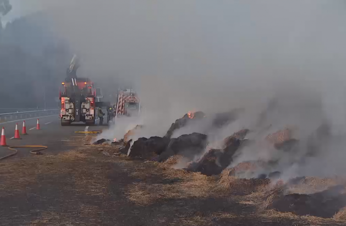 Por fortuna non houbo que lamentar danos persoais, pero vaia fumareda se levantou na autovía A-6 á altura das Nogais, onde un camión que transportaba palla prendeu lume este sábado.