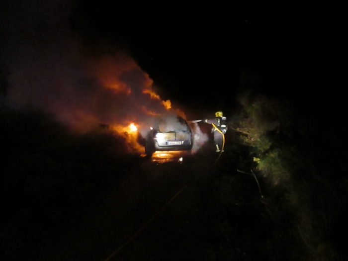 Pasados uns minutos das oito da tarde deste sábado o Parque de Bombeiros de Carballo recibiu unha chamada de alerta do CAE 112 informando dun lume nun coche na estrada que comunica o lugar da Fraga coa parroquia de Vilaño, no Concello da Laracha. Unha vez no punto, tras comprobar que non había persoas afectadas, os Bombeiros procederon á montaxe dunha liña de espuma de baixa expansión debido a un derrame de combustible do vehículo afectado, e a extinción do lume. Dado que ninguén reclamou os danos, as forzas de seguridade investigan se o coche puidese ser subtraído.