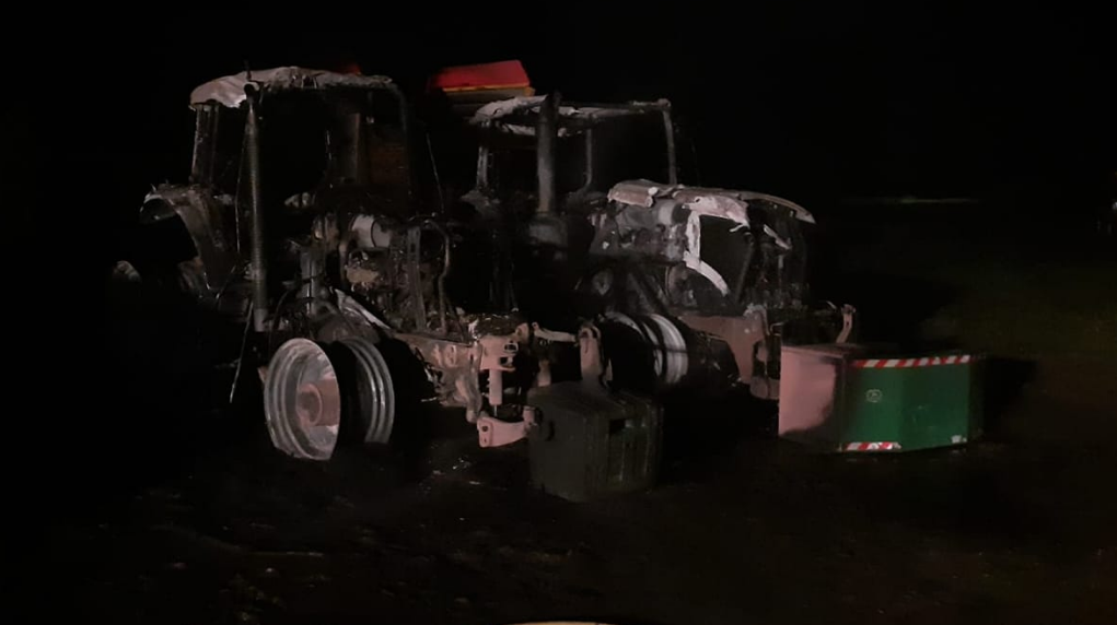 Finalmente, os Bombeiros de Cee comunicaron que as lapas calcinaron tres tractores, unha máquina recolledora de millo e un remolque pero que tamén se viu afectado diverso material, con importantes perdas.