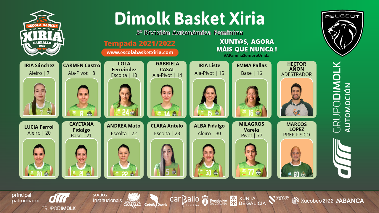 Ao conxunto carballés, integrado por xogadoras dos Clubs Basket Xiria e CB Artai (polo convenio de colaboración entre ambos), súmanse tres novas xogadoras e deixan o equipo, por motivos académicos, 5 integrantes respecto da configuración da tempada pasada, onde se retornou á competición sénior feminina, logo de dous anos sen equipo. Polo que o Dimolk Basket Xiria mantén a maioría de xogadoras e a mesma “columna vertebral” do equipo da tempada pasada.