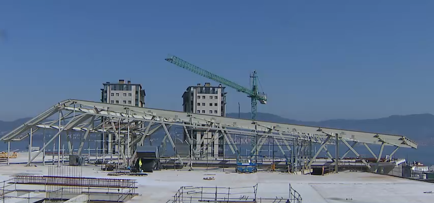 Xa está colocada a estructura que fará unha onda na parte superior do edificio, deste xeito vai tomando forma así o deseño de Tom Mayne, o arquitecto proxectou unha terraza superior, que será na realidade unha gran praza de máis de 20.000 metros cadrados con espectaculares vistas á ría de Vigo. Ademais das estacións de tren e autobuses, albergará tendas e cafeterías.