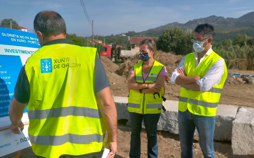 La conselleira de Infraestructuras y Movilidad, Ethel Vázquez, comprobó el estado de las obras y avanzó que el próximo mes de noviembre estará finalizada la nueva glorieta de la carretera AC-550 en Xuño, que reforzará la seguridad vial en ese entorno de Porto do Son.
