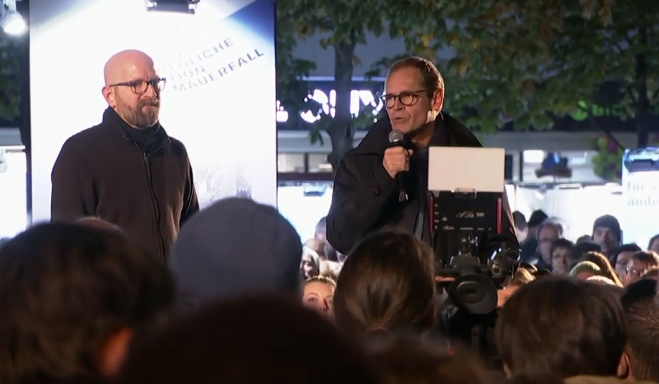 O alcalde Michael Müller presidiu a cerimonia en Alexanderplatz, Berlín Oriental antes da reunificación: “Queremos que o que sucedeu nese momento volva revivirse, pero tamén o que se desenvolveu desde entón. É certo que nestes 30 anos non sempre tivemos un camiño fácil. Pero hai algo que logramos. Vivimos xuntos en liberdade e en paz”.