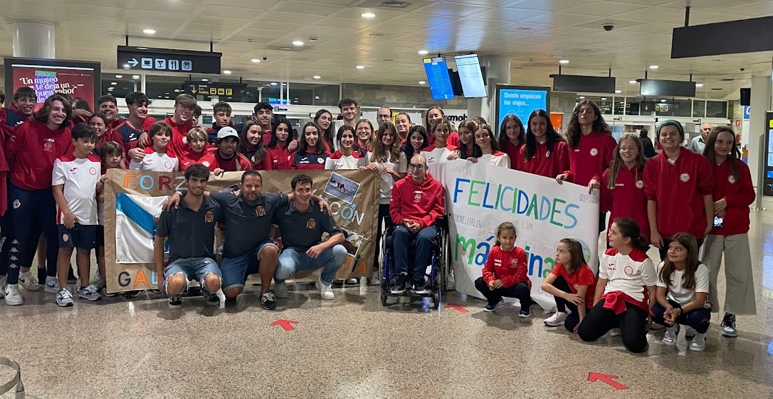 Este lunes a las 20:20 horas llegó al aeropuerto de Alvedro (A Coruña) el deportista del club Sysca de Carballo y miembro de la selección española, Gabriel Rodríguez Colfarei, de 17 años, que viene de participar con unos magníficos resultados, en el Campeonato del Mundo de Salvamento Deportivo en la categoría Junior. Fue recibido por sus compañer@s de club, amig@s, familia y la Presidenta de la Fessga, Nuría Rodríguez, y lo acompañaron en el viaje por las tierras trasalpinas el técnico deportivo de la Fessga David Orgeira y el deportista sadense Alejandro Chacón. Los compañeros del club prepararon pancartas y cánticos para darle una merecida y emocionante bienvenida.