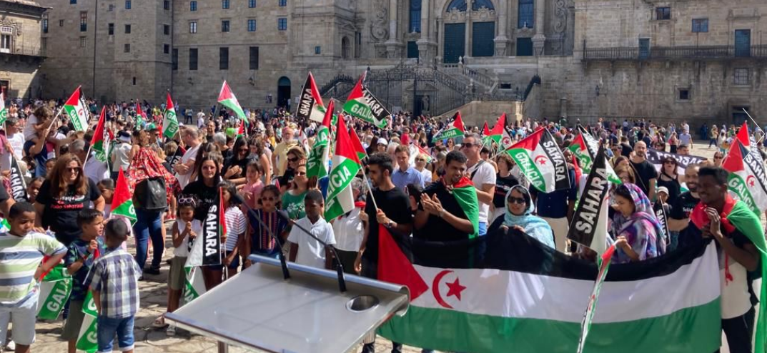 Se trata de un grupo de chicos saharauis que participan este verano en el programa Vacaciones en paz, con el que colabora la Administración autonómica. En el acto, celebrado este domingo en la plaza del Obradoiro, participó el director general de Familia, Infancia y Dinamización Demográfica, Jacobo Rey.