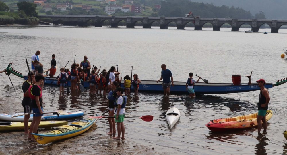 Entre as novidades deste ano estivo a actividade de hoxe: unha saída ao Barco Dragón, organizada en colaboración co Club de Remo Taxamar de Outes e en colaboración coa Federación Galega de Piragüismo. Así, a rapazada desprazouse en dous autobuses ata as instalacións do club en Outes, dende onde os máis maiores desfrutaron das súas propias piraguas, mentres que os máis pequenos se montaban en grupos de 20 rapaces e rapazas no Barco Dragón, deseñado especialmente para estas actividades xa que non pode volcar.