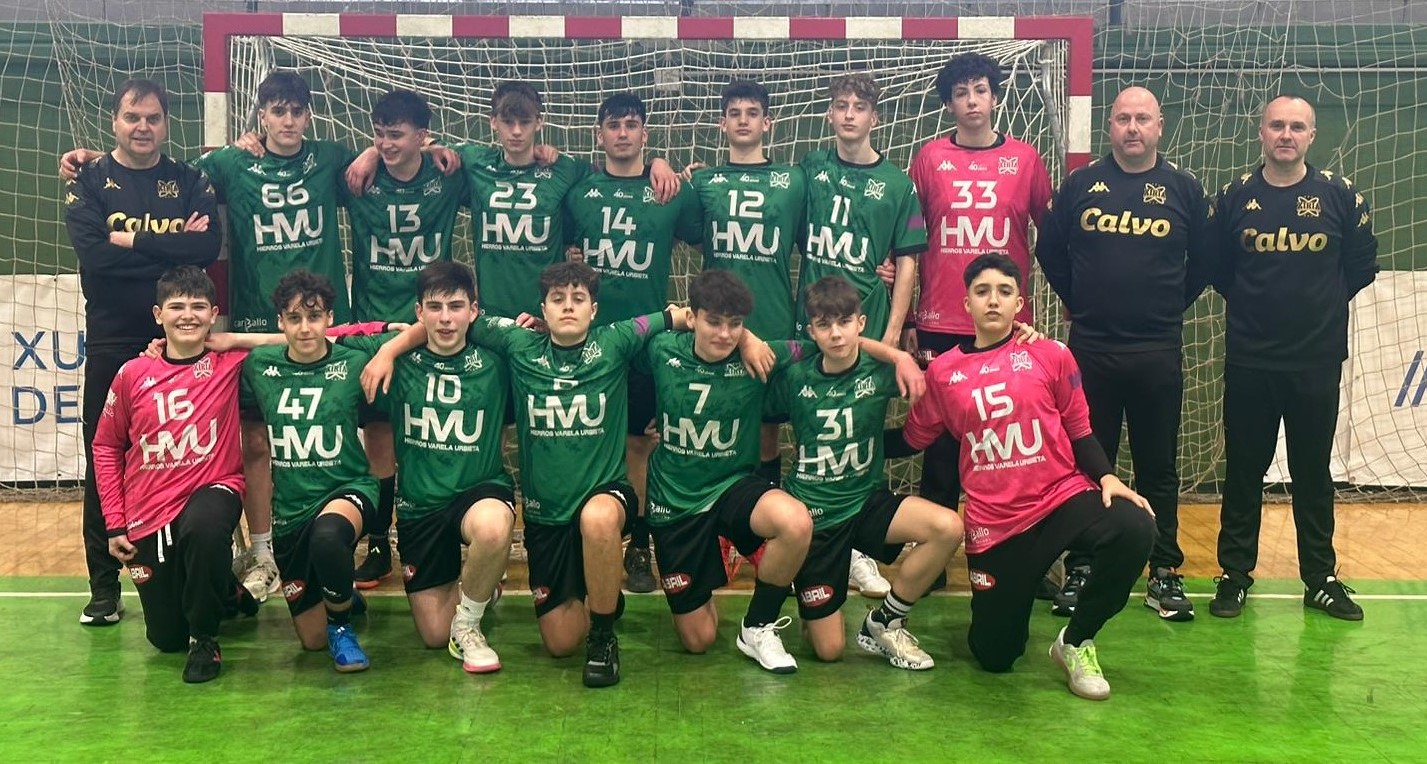 Hierros Varela Urbieta Xiria 42 (23): Izan Cabeza, Xano Rama y Dani Marta (porteros) Andrés Pombo 11, Nico Cancela 8, Saúl Fuentefría 3, Alvaro Gómez 4, Marcos Varela 9, Pablo Fraga 1, Xabi Fernández 1, Andrés Pedreira 1, Lucas Mateo 3, Nico Mejuto 1 y Rubén Nogareda