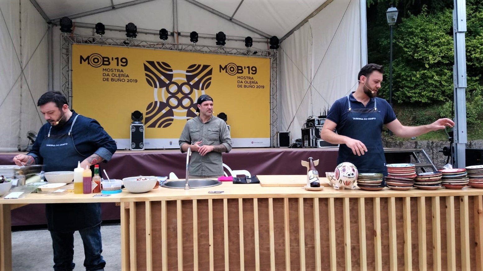 Este año estuvo compuesto de un guiso de lapas y mejillones con patatas, un plato tradicional de la cocina marinera. Carmen, la cocinera del restaurante O Esqueiro, llevó la batuta en los fogones para deleitarnos con un plato que representa todos los valores de la dieta atlántica y en el que, una vez más, se fusiona alfarería y mar para ofrecer una mezcla que solo es posible en el ayuntamiento de Malpica. En esa fusión interviene un tercer elemento: la cocina. Este viernes se celebró un showcooking en el que los cocineros Óscar Ures, del restaurante A Cunca, y David Vilariño y Alberto Alvedro, de la Taberna do Campo, volvieron a poner en evidencia lo bien que “maridan” gastronomía y alfarería de Buño. Ceviche de corvina, pulpo sobre tosta de pan de cereales y carne asada a 100 grados durante tres horas con verduras fueron, con muchísimos más matices, los tres platos que pudieron degustar las personas que consiguieron plaza, ya que estaban limitadas.