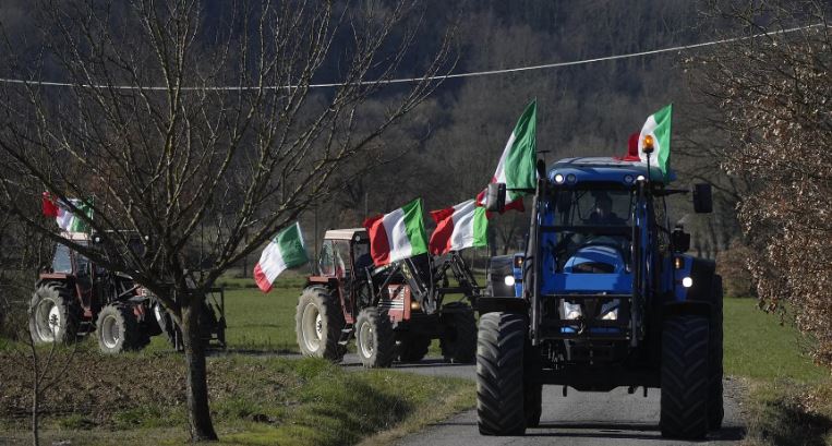 Un grupo de agricultores italianos está de camiño a Roma cos seus tractores para participar nunha manifestación nacional convocada para o venres contra as políticas nacionais e europeas, en concreto, as importacións baratas, os altos custos e os baixos prezos agrícolas.