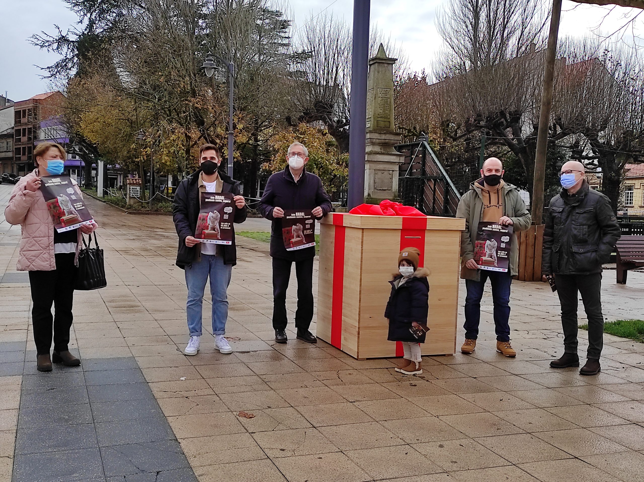 El acto se celebró en la Plaza del Ayuntamiento, junto a la enorme caja de madera en la que podrán depositarse los “rasca” que distribuirán los 78 comercios participantes y los boletos que entregarán a sus clientes un total de 32 locales de hostelería. En total está previsto repartir 200.000 boletos y 13.000 premios por un valor de 65.000 euros.