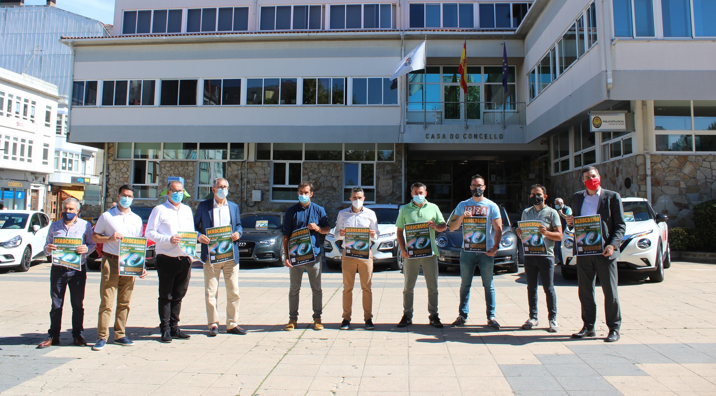 El tradicional feirón del 5º domingo de mes, el MercaeDillo del CCA y la Feria del Vehículo de Ocasión, Berocasión, organizada desde la Concejalía de Promoción Económica, serán los eventos comerciales encargados de cerrar el mes de agosto por todo lo alto en Carballo. Los concesionarios participantes, que este año son 11, empezaron este lunes a calentar motores presentando en la Plaza del Ayuntamiento un avance de las exposiciones que van a ofrecer durante todo el fin de semana en sus establecimientos. Con los representantes del sector estuvieron el concejal de Seguridad, Ferias y Mercados, Juan Seoane, y el alcalde, Evencio Ferrero.