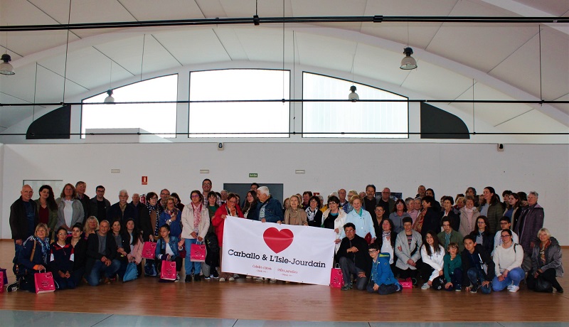 El concejal de Cultura, Marcos Trigo; la presidenta del Comité de Irmanamento de Carballo con L’Isle Jourdain, Ana Cancela, y las familias de acogida recibieron este lunes a los vecinos y vecinas de la villa francesa que participan en un nuevo intercambio entre los dos ayuntamientos, pero este mucho más especial, ya que coincide con el 25º aniversario del hermanamiento. Con este motivo, a lo largo de la semana se celebrarán numerosas actividades culturales e institucionales.