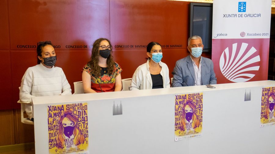 Valentín García, acompañado xunto coa concelleira de Acción Cultural e primeira tenente de alcalde de Santiago, Mercedes Rosón; a comisaria do festival Delas Fest, Clara Rodríguez Cordeiro; e a artista encargada da intervención mural en Santiago, Xoana Almar, destacou “a importancia de combinar a análise arredor da cultura urbana galega en clave de xénero coa dinamización social do galego”. Así mesmo, lembrou que o público interesado en asistir debe inscribirse previamente no web www.cidadedacultura.gal e que o evento tamén se poderá seguir por streaming desde a canle de YouTube de 7H Cooperativa Cultural, entidade impulsora desta iniciativa.
