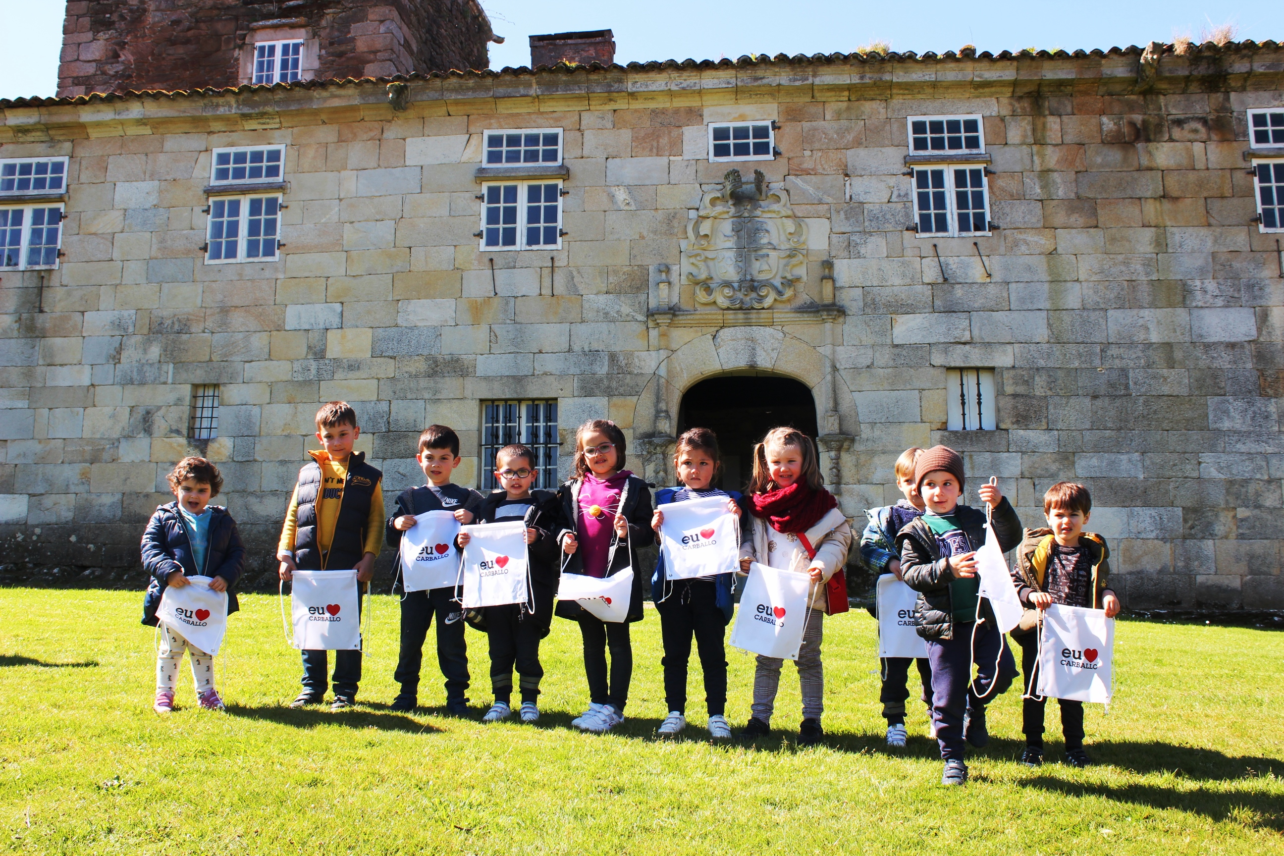 Despois da lectura de Samuel, a rapazada, desprazouse ata o Pazo de Vilar de Francos, que abriu as súas portas para que os nenos e nenas tamén tivesen a oportunidade de coñecer outra peza fundamental do patrimonio da súa parroquia. No emblemático edificio do século XVI desfrutaron dun chocolate ben quentiño con churros e o xardín converteuse no seu parque de xogos nesta mañá especial.
