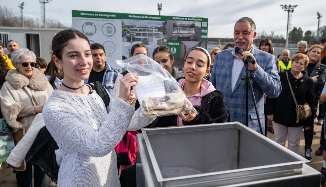 “Este edificio será sobre todo un templo de las artes, un gran escenario para la música, la danza, el deporte y el teatro. Pero también una instalación de gran importancia económica para el desarrollo del Ayuntamiento, un complemento de la actividad turística”. Con estas palabras presidía el alcalde de Oleiros, Ángel García Seoane, el acto de colocación de la primera piedra del emblemático edificio de Bastiagueiro. El alcalde se refirió también a que el edificio ya se había intentado hacer en 2005, “pero que fue paralizado por el PSOE y el PP, siempre haciendo pinza contra lo progreso de Oleiros”. En aquella ocasión, el Ayuntamiento había tenido que indemnizar a la constructora con casi 200.000 euros. “Si pudiéramos hacerlo en el 2005 ya se estaría disfrutando ahora”, dijo García Seoane. El cofre que se enterró bajo las bases del futuro recinto, de medio metro cúbico, contenía también periódicos del día, monedas y alguna publicación, además de una “Carta a quién sabe quien”, firmada por el alcalde, dirigida a las personas que puedan llegar a leerla en el futuro, y en la que hace algunas reflexiones sobre Oleiros y el mundo en este momento concreto de la historia.