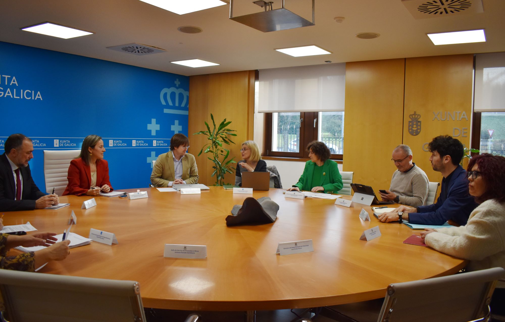 Goretti Sanmartín, acompañada dos concelleiros Xan Duro, Iago Lestegás e Pilar Lueiro, mantivo este luns un encontro co conselleiro de Sanidade, Julio García Comesaña, e coa conselleira de Infraestruturas, Ethel Vázquez, na que os representantes da Xunta lle transmitiron ao goberno municipal unha nova proposta como resposta á remitida polo Concello a pasada semana.