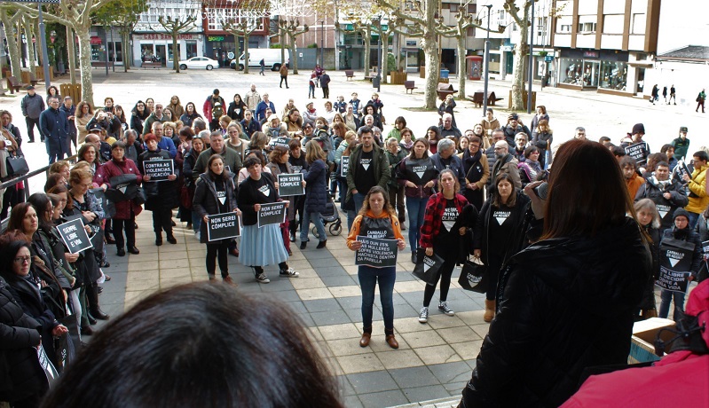 Lectura de manifiesto contra la violencia de género por el alcalde de Carballo, Evencio Ferrero.