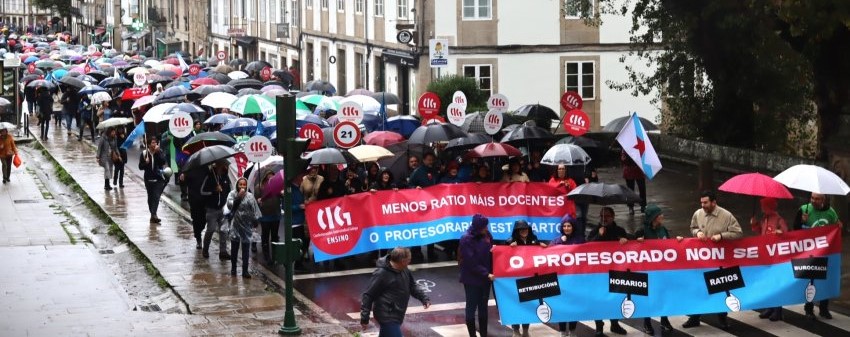 Los sindicatos CIG-Ensino, CSIF y STEG han anunciado este miércoles todo un calendario de movilizaciones en el sector de la educación para noviembre, que incluye varias concentraciones, una manifestación en Santiago el día 19 y una jornada de huelga el día 28 ante la negativa de la Xunta a «abrir un proceso de negociación’ tras mostrarse en desacuerdo estas organizaciones con el último acuerdo alcanzado.