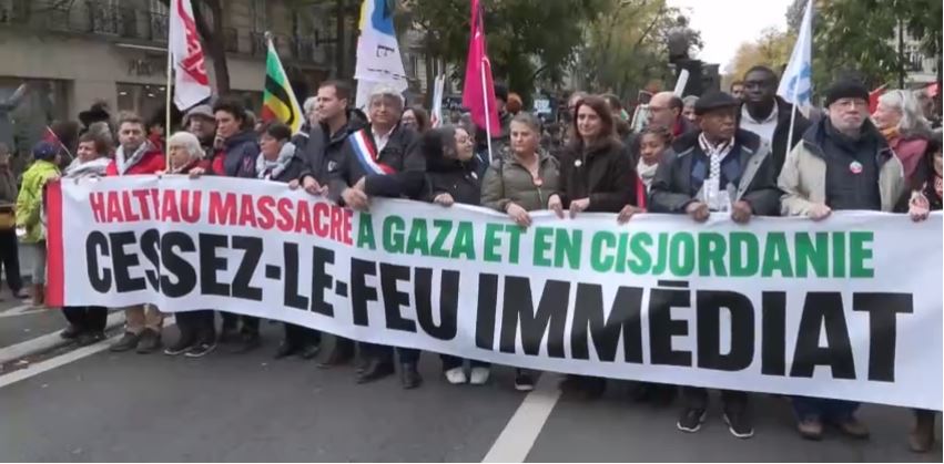 Las manifestaciones en apoyo de Palestina y a favor de un alto el fuego en Gaza continúan en el Reino Unido, Bélgica, y Francia. En Londres, alrededor de medio millón de personas salieron a la calle, y la policía desplegó más de 2000 agentes para garantizar que la marcha fuera pacífica. Esto sucede tras una semana de disputas políticas sobre si la manifestación debía celebrarse el fin de semana en que el Reino Unido honra a sus caídos en la guerra. Decenas de miles de personas marcharon también el sábado en Bruselas para exigir un alto el fuego inmediato en la guerra. Una manifestación pacífica en la que también participaron familias y niños. En Francia, la marcha de París se adelantó a la manifestación del domingo contra el antisemitismo, que divide a los partidos políticos franceses.