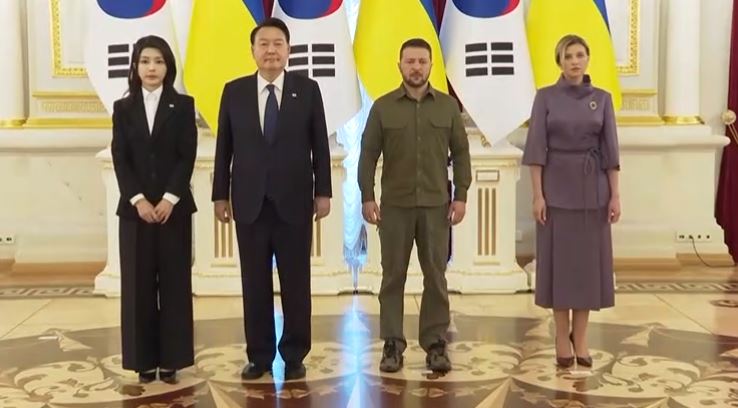 El presidente de Corea del Sur, Yoon Suk Yeol, realizó este sábado una visita sorpresa a Ucrania, ofreciendo un creciente apoyo militar y humanitario al país invadido en su guerra con Rusia, al tiempo que demostraba la cooperación de su propia nación con la OTAN. Llegó a Ucrania con su esposa, Kim Keon Hee, tras viajar a Lituania para la cumbre de la OTAN y a Polonia. Es su primera visita desde que Rusia invadió Ucrania hace casi 17 meses.