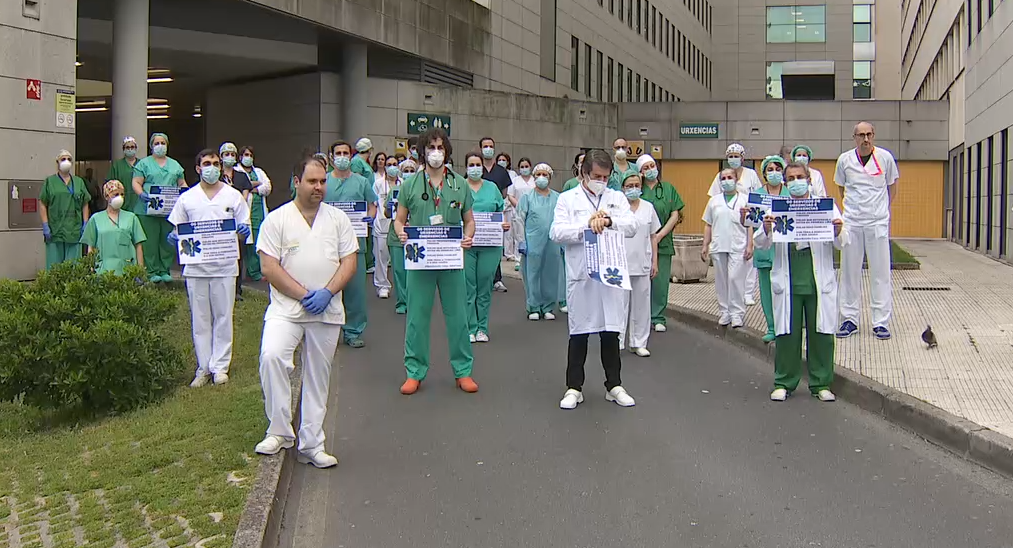 Os servizos de urxencias e de emerxencias dos hospitais galegos gardaron un minuto de silencio ás oito da tarde deste venres. Foi un momento moi emotivo e fíxerono polos profesionais sanitarios falecidos, polos que estiveron ou están na primeira liña de loita contra o coronavirus, polas súas familias e tamén por toda a pobación e a axuda que reciben dela.
