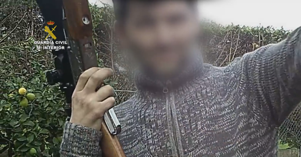 O detido difundira un vídeo nas redes sociais en que portaba un deses rifles de alta potencia dicindo que o modificara el mesmo e onde se rexistraba un disparo no que se podía ver como o proxectil atravesaba unha chapa de ferro.