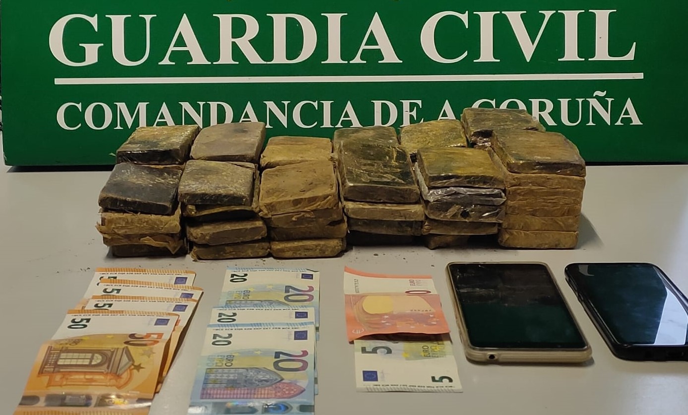 A Garda Civil de Vimianzo detivo a dous veciños da Coruña por un delito de tráfico de drogas ao ser interceptados con máis de 4 quilos de haxix no seu poder. Os feitos iniciáronse cando a Garda Civil tivo coñecemento de que, aproveitando o Estado de Alarma, se produciu un aumento do movemento e tránsito de substancias estupefacientes nas diferentes vías de comunicación da Costa da Morte. Este aumento viña acompañado da utilización das medidas de protección (máscaras) ante a pandemia provocada polo COVID-19 para evitar a súa identificación e recoñecemento por parte das Forzas de Seguridade.