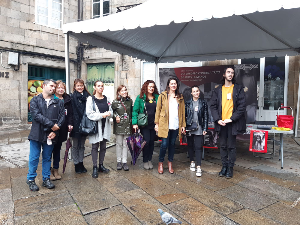 La concejala de Políticas de Igualdad, Noa Díaz, visitó durante la mañana de este viernes la carpa informativa que el Ayuntamiento de Santiago instaló en la plaza del Toural con motivo de la celebración del Día europeo contra la trata y que tiene como objetivo fundamental concienciar a la ciudadanía alrededor de un problema que afecta a más de 24.000.000 de personas en todo el mundo.