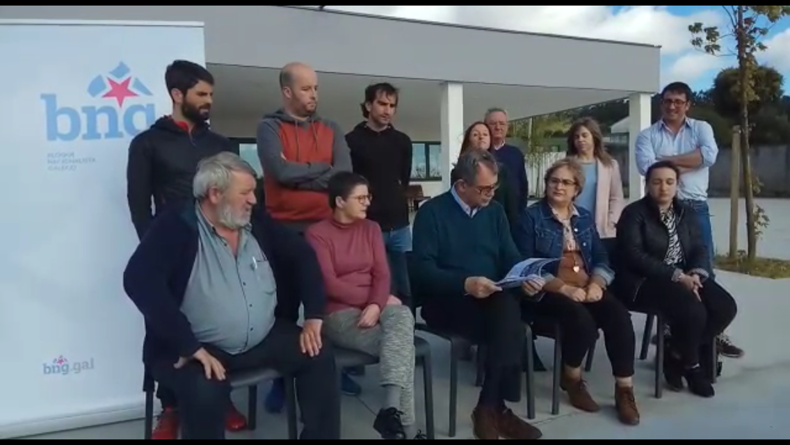 Evencio Ferrero acompañado de una amplia representación de los miembros/as de su candidatura a las próximas elecciones municipales del 26 de mayo, presentó este viernes a las 18:00 horas en rueda de prensa a pie del Centro Social de Ardaña parte de las propuestas del programa del BNG para el próximo mandato, si de nuevo forma Gobierno.