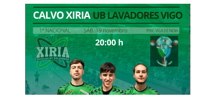 Vuelve el Calvo Xiria al Vila de Noia, será este sábado a las 20:00 horas, en un momento en el que necesita todo el apoyo de su afición. El equipo sigue trabajando de manera positiva, corrige y mejora cada semana; pero también es cierto que tiene ganas de cultivar un buen resultado. El Calvo Xiria debe de lidiar con la ansiedad inicial, que no le está permitiendo empezar bien los partidos, centrarse en su juego y en el rival que tendrá enfrente. En esta ocasión, será el UB Lavadores Vigo, recientemente ascendido, un equipo que tiene juventud en la pista y experiencia en el banco, con Luis Montes; están realizando una buena temporada. Uno de los peligros de este Lavadores es que aprovecha bien los errores del rival, para marcar goles al contraataque; por lo que al balance será fundamental; pero también debe estar fino en el ataque posicional el Calvo Xiria, con las ideas claras y con un juego fluido que marque la pauta del partido. Podremos ver un partido dinámico, abierto, y con ritmo. Balonmano en estado puro, en un Vila de Noia que tiene que apoyar a los suyos como si de una final se tratara.
