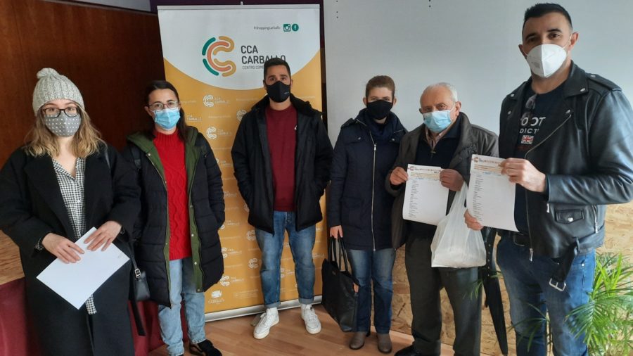 Este 31 de diciembre, el CCA Carballo hizo entrega de los dos premios, de 500 € cada uno, del sorteo celebrado este miércoles y patrocinado por Vázquez y Reino. Resultaron ganadores Eduardo Pérez Fernández y José Suárez Fernández, de Lema y Carballo respectivamente, ambos recibieron los premios de manos de un representante de la empresa constructora. Aunque estos son los últimos premios del 2020, quedan pendientes de sortear 5 premios de 50 € cada uno, de las papeletas despachadas por la hostelería participante en la campaña, y también el gran premio de 300 € mensuales durante todo el 2021. El plazo para consumir los premios entregados hasta ahora finalizará el día 9 de enero de 2021.