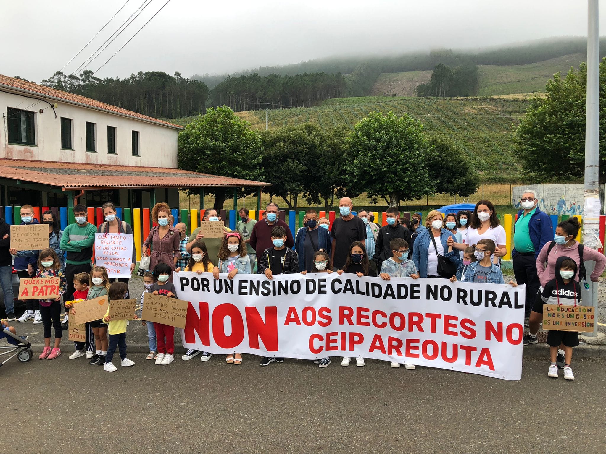 Este lunes padres y alumnos del CEIP Areouta de Sardiñeiro, en el ayuntamiento de Fisterra, se concentraron para que la Xunta de Galicia no realice recortes en el centro escolar.